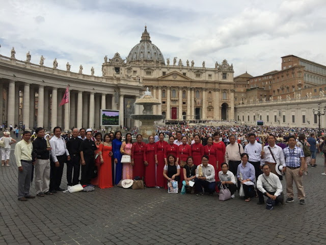 Trở về Roma trong niềm tri ân cảm tạ, đoàn hành hương dậy từ sớm để đến quảng trường thánh Phêrô , tiếng Ý gọi là Udienza - được gặp Đức Thánh Cha. Người ta nói, đến với ĐTC Gioan Phaolo II để được NHÌN, đến với ĐTC Bêndicto XVI để được NGHE, còn đến với ĐTC Phanxico để được CHẠM. Hôm nay chúng tôi được chứng kiến cả một quảng trường đông chặt người, xe ĐTC từ từ đi vào quảng trường giữa tiếng reo hò của hàng vạn tín hữu gần xa. Những em bé được bế sẵn dọc hàng chắn, những cánh tay giơ sẵn đón chờ cái bắt tay của người cha chung. ĐTC đôn hậu với ánh mắt thân thương và trìu mến, ngài không tỏ ra vội vã dọc đường đi. Ngài sẵn sàng dừng lại vì một em bé, vì một bệnh nhân, tươi cười trong cố gắng và tình thương chiến thắng nét mệt mỏi của tuổi già. Ngài ngỏ lời với dân Chúa về chủ đề "Con đường của Chúa Kitô là con đường của sự bách hại".