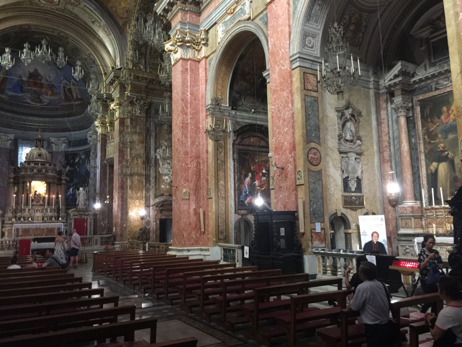 Đối với Tây phương, đây là Vương Cung Thánh Đường kính Đức Mẹ đầu tiên và lớn nhất. Trần đền thờ không phải là thiếp vàng nhưng là dát vàng. Số vàng đầu tiên đưa từ Mỹ Châu về được Hoàng đế Fermando và Hoàng hậu Tây Ban Nha tặng cho Đức Giáo Hoàng Alexandro VI (1492 - 1503). Chúng tôi viếng thăm đúng vào giờ lễ của Vương cung Thánh đường. Thánh lễ bằng tiếng Latinh nghe sao ấm áp và có sức truyền cảm đến thế. Tiếng đàn du dương hoà lời ca của ca đoàn đi vào lòng người bằng ngôn ngữ của nghệ thuật. Tiếng Ý được coi như con đầu lòng của tiếng Latinh nên chúng tôi cũng chẳng phân biệt được hát Latinh hay tiếng Ý, nhưng cảm nhận thì phân biệt được rất rõ hát trong Đức tin hay hát trình diễn nghệ thuật. Tiếng đàn dạo solo sau bài hát kết lễ không chỉ để rước đoàn chủ tế về trong trang nghiêm, mà cũng ru chúng tôi ra về trong sâu lắng của tâm hồn. Lời của thánh Đệ Mông-Pho "Nhờ Mẹ đến với Chúa Giêsu" bừng lên trong chúng tôi cả một chuyến hành hương châu Âu, từ Lộ Đức đến Fatima, từ Mẹ của Lòng Thương Xót đến với Lòng Chúa Thương Xót. Chuyến đi không khỏi những mệt mỏi thể xác mà đôi khi tinh thần cũng có lúc rã rời, vì khác quan điểm, vì chậm trễ thời gian, vì không hiểu ý nhau, nhưng cuối cùng ai cũng nhận thấy được: "Nhờ Mẹ đến với Chúa Giêsu". Lòng Chúa thương xót như đại dương bao la xoá đi mọi ranh giới và bất đồng. Mọi người cho nhau địa chỉ, trao nhau lời mời, hẹn gặp nhau trong Lòng Chúa Thương Xót.